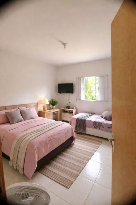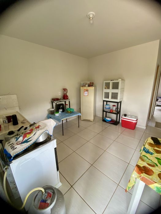 Sala, cozinha, WC social, 1 dormitório, área de serviço e garagem